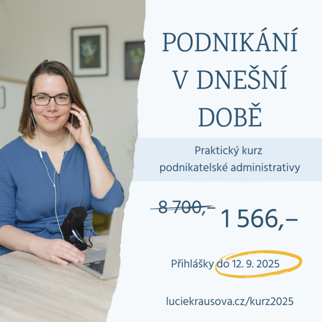 V kurzu Podnikání v dnešní době vás naučím, jak správně nastavit podnikání v kombinaci se zaměstnáním, důchodem, studiem i rodičovskou. Jak vyplnit daňové přiznání a jak nahlašovat úřadům různé změny. Díky dotaci MPSV se slevou 82 % – poslední dva běhy kurzu s dotací. Příští rok už dotační program pokračovat v této podobě nebude.